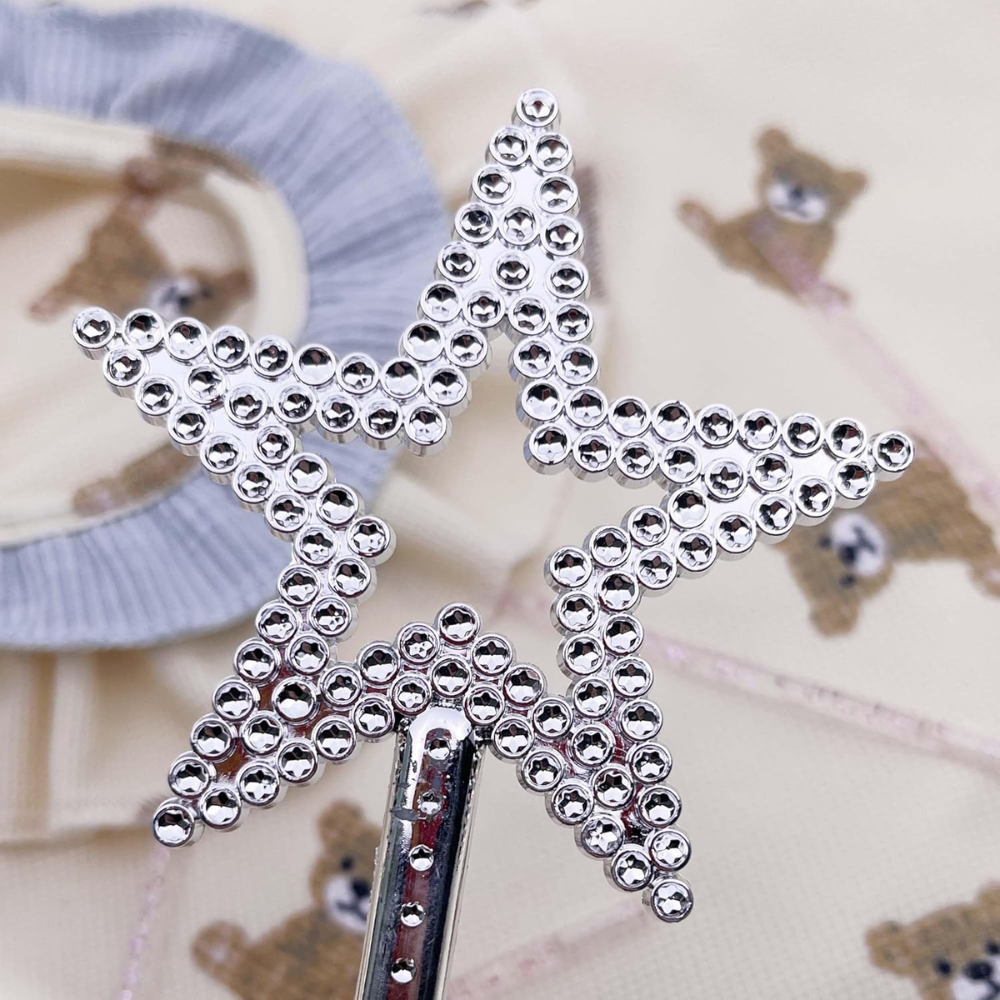 Ajoutez une touche de féerie à vos célébrations avec cette magnifique baguette étoile argentée. Ornée de perles scintillantes, elle capturera la lumière et créera un effet magique à chaque mouvement